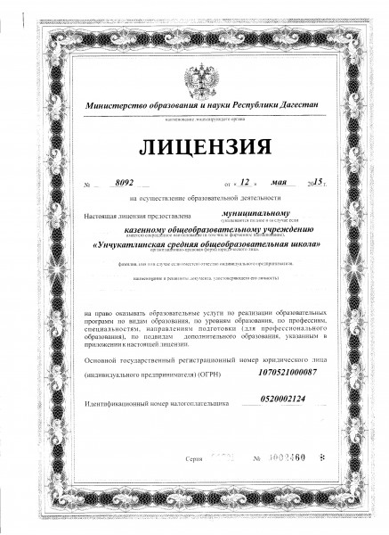 | Полное наименование образовательной организации* | Муниципальное казенное общеобразовательное учреждение "Унчукатлинская средняя общеобразовательная школа" |